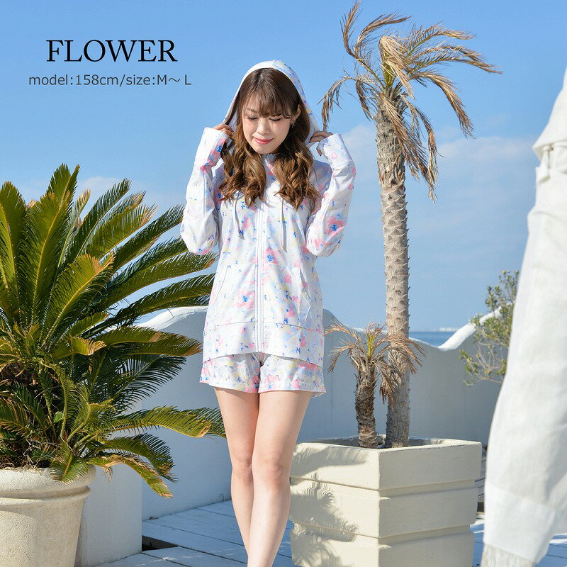 ラッシュガード 総柄 パーカー フラワー 花柄 レディース 長袖 おしゃれ 水着 体型カバー 大きいサイズ UVカット フード スポーツ アウトドア プール 海 送料無料